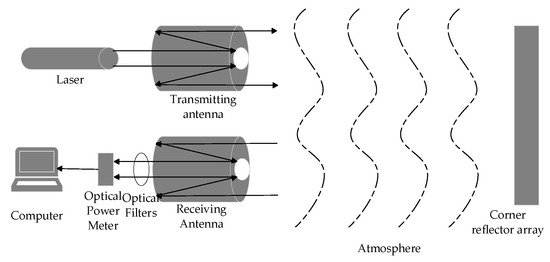 Although the impact of atmospheric turbulence on laser transmission has been widely studied, existing results still have two major limitations. Most experiments are limited to a single transmission distance, and there is a lack of comparative analysis of long- and short-distance links, resulting in the lack of a quantitative model for the variation in turbulence intensity with distance. Existing studies usually assume static meteorological conditions and ignore the compound effects of multiple weather conditions on link stability in actual environments. Re-entry transmission technology using single-ended laser transmission and reception can effectively carry out long-distance atmospheric remote sensing detection, turbulence monitoring, and laser communication even under changing geographical conditions. Therefore, in-depth exploration of the influence of the atmosphere on the transmission characteristics of the laser beam in the re-entry path is of great significance to the development of related technologies. Corner reflectors are mature and reliable passive jammers. Due to their special structure, they can generate strong radar echo signals in the direction of radar illumination, simulating the radar scattering characteristics of targets much larger than their size. They are often used to jam and deceive the terminal guidance radars of anti-ship missiles [13]. In addition, traditional single-reflector backhaul solutions are susceptible to multipath interference and cannot easily meet the high signal-to-noise ratio requirements of long-distance links. To address the above gaps, this paper proposes a dual-distance backhaul experimental framework based on a corner reflector array. Through experimental measurements of 0.8 km and 4 km links, the system reveals the influence of transmission distance and weather conditions on turbulence intensity, the light intensity scintillation index, and the spot drift range. Compared with single-link research, this work further verifies the advantages of corner reflector arrays in suppressing signal attenuation and improving backhaul efficiency, and provides key design criteria for infinite optical communication systems in complex environments. This research not only provides a measured basis for the optimization of related links, but also lays a theoretical and technical foundation for future fields such as optical measurement, communication link design, and target detection in more complex environments. It has important academic value and engineering significance.