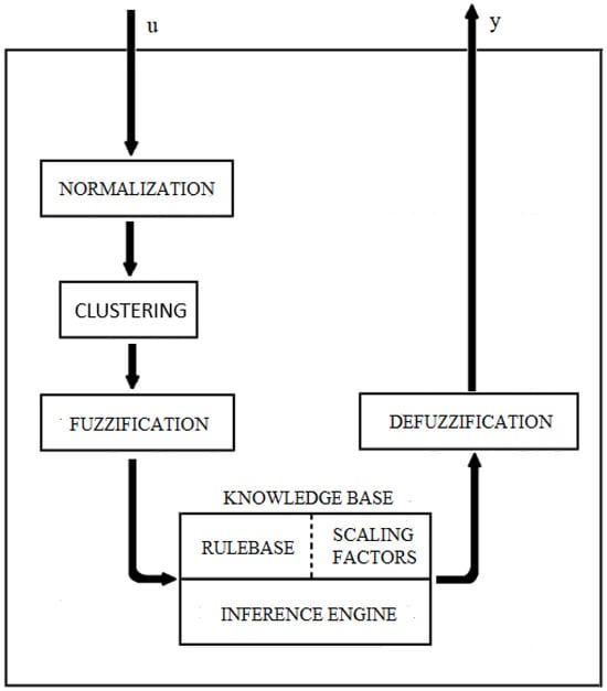This work presents a new method that for the identification, modeling, and control of nonlinear systems described by the T-S model. The proposed method uses MDMFs and different clustering methods to adjust these functions, achieve a better fit of these functions, and even reduce the number of membership functions necessary to achieve adequate control of the nonlinear system. Figure 1 shows the control process using clustering techniques, illustrating the basic structure of a fuzzy system.