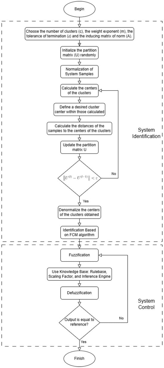 Flowchart of the identification and control process using the FCM clustering algorithm.