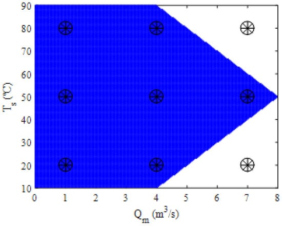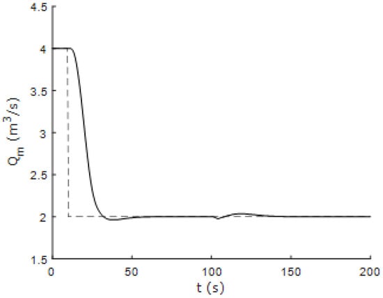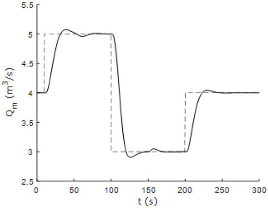 Figure 25 and Figure 26 show the response of the system controlled using MDMFs defined by the GK method when the system is subjected to changes in the reference values of flow and temperature. Furthermore, Figure 27 and Figure 28 show the response of the controlled system to successive changes in the reference signals. It can be seen that the fuzzy controller performs correctly in areas away from the nominal operating point.