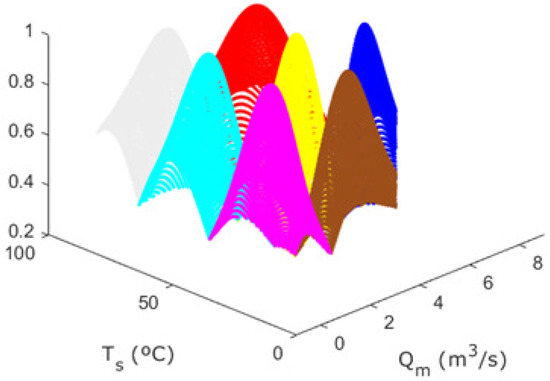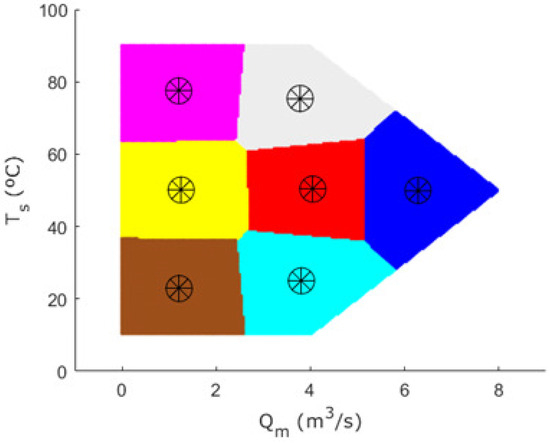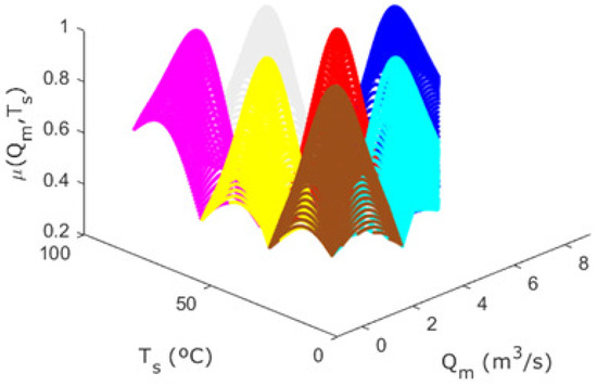 and the MDMF is defined as . For each multidimensional fuzzy set, a central point must be designed. This central point is defined by clustering methods in order to select points that produce a greater separation between the datasets. In this work, the dataset used for the clustering process corresponds to the set of measured input–output samples collected from the system under study.