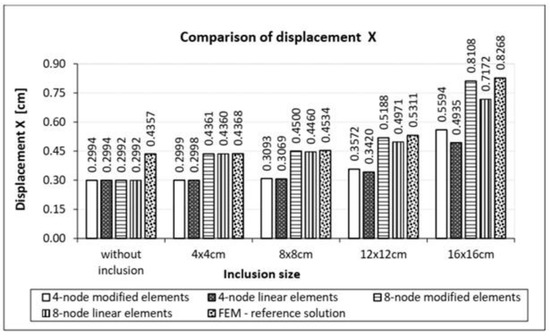 A comparison of the obtained displacement values is presented in Figure 11. The displacements are presented according to the X- and Y-directions indicated in Figure 10.