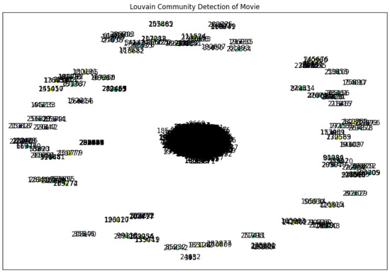 Similarly, we performed the same experiment on MovieLens and obtained its graph and community detection results as shown in Figure 6 and Figure 7.