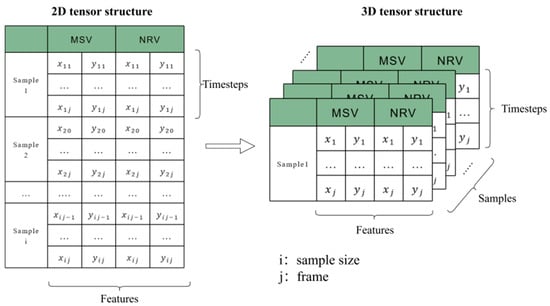In this study, the initial data consisted of two-dimensional tensors, where each tensor represented a frame of trajectory data for two vehicles involved in a merging scenario. Each frame included the x and y coordinates of both the MSV and the NRV. This structure is suitable for analysis but not directly compatible with the TimeGAN model, which requires a three-dimensional input tensor format.
