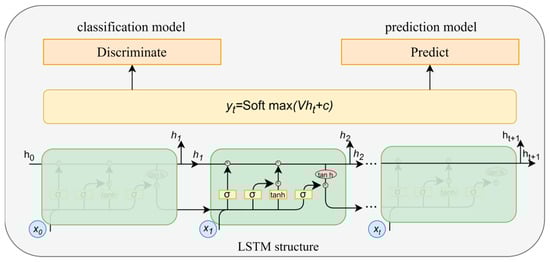 Authenticity is used when it is necessary to evaluate whether the generated data can serve practical purposes. In the case of time series data, this means whether the generated data can inherit the predictive characteristics of the original data or, in other words, whether the model can excellently capture the features of time series. Well-generated data should possess predictive capability, meaning they can be used for the prediction of subsequent trajectories. Therefore, a time series prediction model was trained utilizing a RNN with the generated dataset to predict the next time vector for each input sequence. After training, the model was tested on the original dataset. If the prediction results had a good fit with the real data, it indicates that the generated data retained high-quality time series features similar to those of the real data. The mean absolute error (MAE) served as the metric for quantifying the degree of fit and measuring predictive performance. The smaller the error value, the better the prediction effect, indicating that the generated data had good performance in capturing the characteristics of the temporal distribution, and the higher the authenticity. The RNN architecture used for classification and prediction models is illustrated in Figure 9.