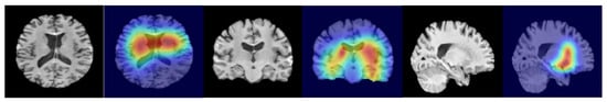 Compared with unimodal models and existing methods, the proposed multimodal feature fusion method performs better. In the interpretability analysis, the top 20 SNP loci selected by SHAP values include 11 known loci (e.g., rs11230569, rs356220) and 9 novel loci (e.g., rs78251200, rs4538475). The Grad-CAM heatmaps clearly highlight the basal ganglia and substantia nigra regions, particularly key areas such as the caudate nucleus and globus pallidus within the basal ganglia (Figure 5). These regions show a high degree of correspondence with the distribution of Lewy bodies in Braak staging and the areas of metabolic abnormalities observed in PET scans, further validating the pathological relevance and the accuracy of the decision-making process of the model [25].