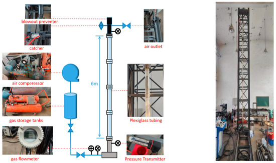 The auxiliary system consists of an air compressor, a gas storage tank, and adjustable control valves. The observation system includes a gas flow meter positioned at the gas inlet and pressure transmitters installed at the gas inlet, well bottom, and wellhead.