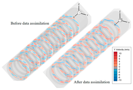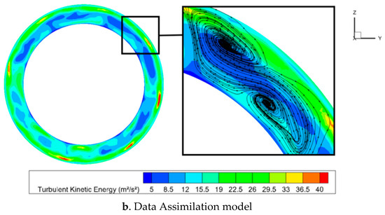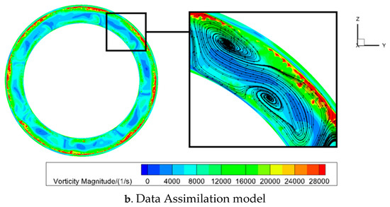 In addition to quantitative improvements, data assimilation revealed critical insights into the flow characteristics within the plunger gap. Notably, changes in the circumferential flow structures and turbulence intensity indicated that conventional models may overestimate sealing performance. The recalibrated model better captured these complex features, providing a more realistic representation of the underlying physics.