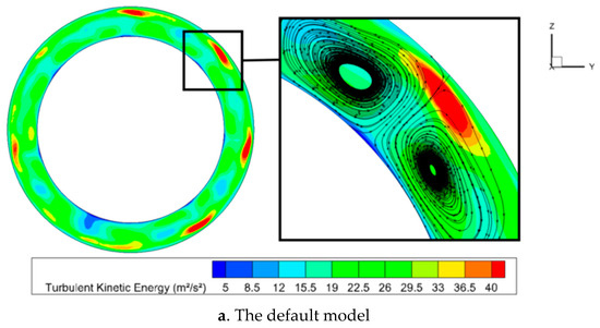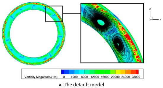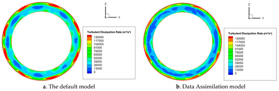 Figure 15 depicts the distribution of turbulent kinetic energy dissipation rate, which aligns with the patterns observed in the previous turbulent kinetic energy and vortex magnitude distributions. The turbulent kinetic energy dissipation rate, a metric for quantifying the rate of turbulence energy loss in a fluid, is crucial for understanding and optimizing the efficiency of fluid dynamic systems. Post-DA, a reduction in the overall level of turbulent kinetic energy dissipation rate is observed. However, for plunger systems that rely on fluid dynamic pressure to maintain seals, a lower dissipation rate may indicate insufficient fluid dynamics, potentially compromising the sealing performance of the plunger.