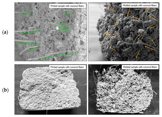 This study also revealed that printed samples exhibited higher flexural strength compared to molded specimens, primarily due to microstructural modifications introduced by the 3D printing process. However, fiber selection and printing conditions significantly influenced performance, emphasizing the importance of optimizing fiber type, concentration, and processing parameters. Natural fibers, such as coconut and wool, contributed to crack-bridging effects, further enhancing mechanical properties.