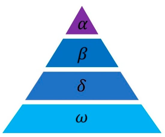 There is a strict hierarchical distribution within the grey wolf population to balance the various responsibilities of each grey wolf. Among them, the grey wolf population is divided into four social classes for management and division of labour, as shown in Figure 1. The first level is Grey Wolf Alpha, which is the leader of the entire wolf pack and possesses the strongest leadership and management abilities; The second level is Grey Wolf Beta, which obeys alpha wolves and can dominate wolves of lower levels than itself, playing a role in coordinating feedback to the entire population; The third level is Grey Wolf δ, which obeys alpha and beta wolves and can dominate wolves of other levels; The fourth level is the Grey Wolf ω, which has the largest number and needs to obey the commands of the other three types of wolves. Although it is at the bottom of the level structure, it plays an irreplaceable role in the stable operation of the wolf pack system.