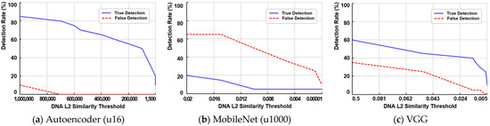 The poor performance of deep learning approaches can largely be attributed to the architecture itself. While current deep learning architectures demonstrate strong performance in terms of “image similarity”, they are less effective in determining “image equivalence”. If a model were trained on a sufficiently diverse dataset of entirely distinct images, it could establish an appropriate threshold while maintaining a low false negative rate. However, training on a limited dataset may perform well in image classification problems but remains less effective in distinguishing whether an image is a derivative of another. Figure 10 clearly illustrates that a well-trained Autoencoder, which learns a compact representation of the data, achieves a higher detection rate than classification-based models such as MobileNet or VGG.