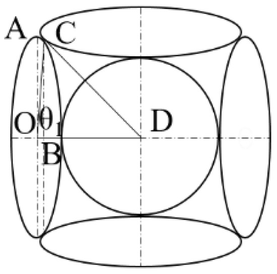 Under ideal conditions, the particles in the filter layer that form the minimum effective pore radius are arranged as shown in Figure 4. The long-axis length of the filter particles OA is represented by a; the short-axis radius OB is represented by b. The effective pore radius of the filter in this particle arrangement is denoted as AD = .