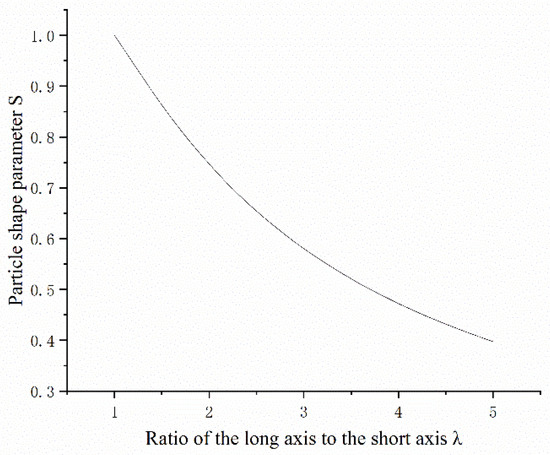 The particle-shape parameter S was calculated for different values of λ, and the results are presented in Table 2. Additionally, the relationship between S and λ is illustrated in Figure 8. From Figure 8, it can be observed that before λ reaches 2.5, the relationship between S and λ can be considered approximately linear. However, as λ increases further, the rate of change in S gradually decreases.