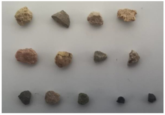 Figure 10 shows the shapes of tailings-sand particles ranging from 2 to 5 mm. The parameters of particle projection were analyzed using image analysis software ImageJ. Details of the specific process are outlined below.