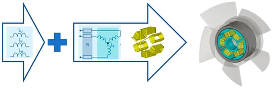 Full-wave simulation models of the winding and the control PCB with the impeller and the fan frame.