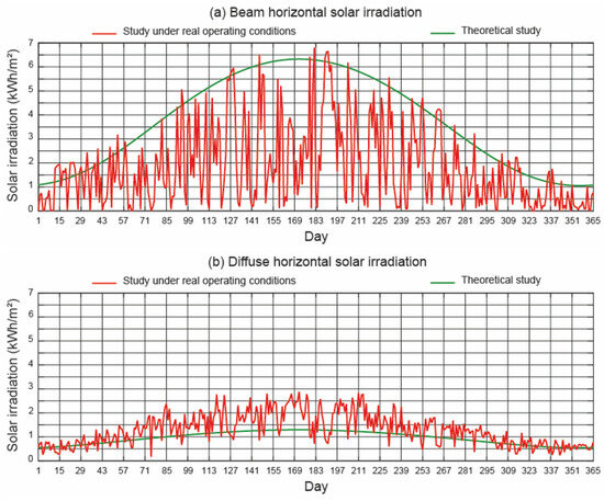 - Barbón, A.; Fortuny Ayuso, P.; Bayón, L.; Fernández-Rubiera, J.A. Predicting beam and diffuse horizontal irradiance using Fourier expansions. Renew. Energy 2020, 154, 46–57. [Google Scholar] [CrossRef]