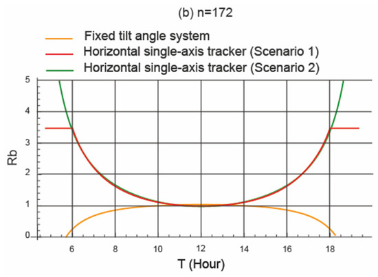 The equations for calculating this parameter for the fixed tilt angle system and for the three operating modes of the horizontal single-axis tracker are as follows:
