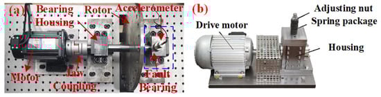Dataset B: PU University Dataset. The PU University bearing fault dataset is publicly available and widely used for mechanical fault diagnosis research. It was collected using an accelerated life test apparatus (Figure 3b) with a 64 kHz sampling rate. The dataset includes NF, OF, IF, and CF. Data are gathered under various load, speed, and fault conditions to simulate real-world industrial scenarios (Table 1), and include noise from environmental or equipment vibrations, ensuring diversity and generalizability for cross-domain learning.