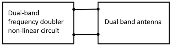 Schema of the proposed harmonic tag: a single-port dual-band harmonic circuit (i.e., a doubled-matched doubler) connected to a dual-band antenna.