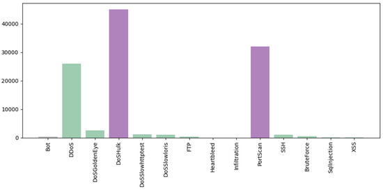 Having the dataset at hand, we have classified it in Table 1. The 15 tags (labels) for each traffic class category are presented. The ‘benign’ class represents regular, non-threatening traffic, while the other classes signify various types of malicious activities. Additionally, a separate class called ‘malign’ has been created, encompassing all malicious activities captured.