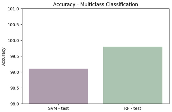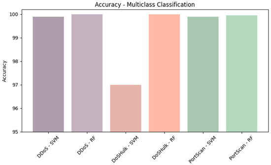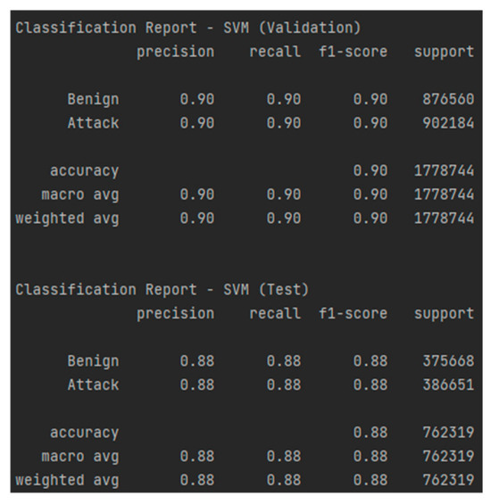 Based on the analyzed data, we can draw the following conclusions, as presented in Table 18. RF achieved superior results in all categories, demonstrating high accuracy and a balanced classification of benign traffic and attacks. SVM, although providing decent performance, has a weaker separation capability and produces more misclassifications.