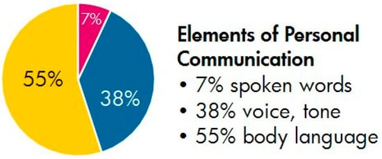 Interpersonal communication concept proposed by Albert Mehrabian. Taken from http://wfhstudy.blogspot.tw/2013/01/blog-post_29.html (accessed on 8 February 2025).