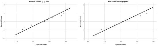 Additionally, the Normal Q-Q Plot from both the pre-test and post-test clearly shows that the data follow a normal distribution (as shown in Figure 2).