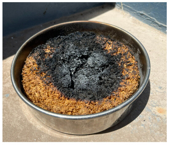 Furthermore, a previous study [11] indicates that this self-protective carbonization effect in rice husk is primarily due to its high silica content. Silica contributes to the material’s resistance to combustion by forming a stable insulating layer that limits heat penetration and delays thermal degradation.