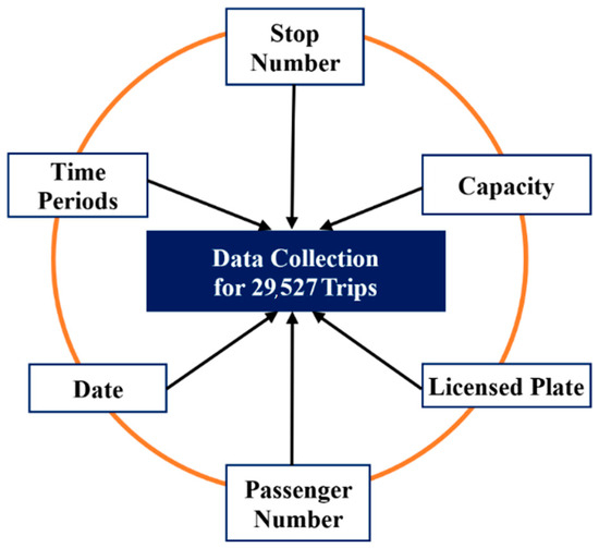 Based on the data obtained, a dataset of 29,257 trips recorded over a month, for which the data were fully collected, was obtained (Figure 3). The dataset, which was transferred to the system via the card system and used in the analyses, included the stop name, date, time, vehicle number plate and vehicle capacity information.