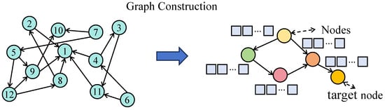The proposed model is composed of three parallel components: the asset graph modeling module, the multi-scale temporal modeling module, and the macroeconomic factor fusion module. These components are encoded independently and subsequently integrated at the prediction layer. The processed multi-asset historical price sequences are first fed into the graph neural network module, where a dynamic graph structure is constructed based on asset correlations, as shown in Figure 1.