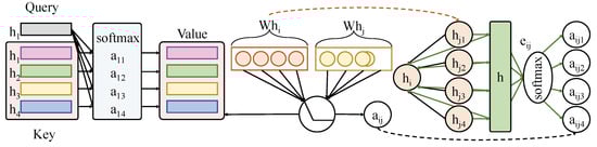Here, denotes vector concatenation. The attention score is then normalized across all neighbors using the Softmax function to obtain the final attention weight :