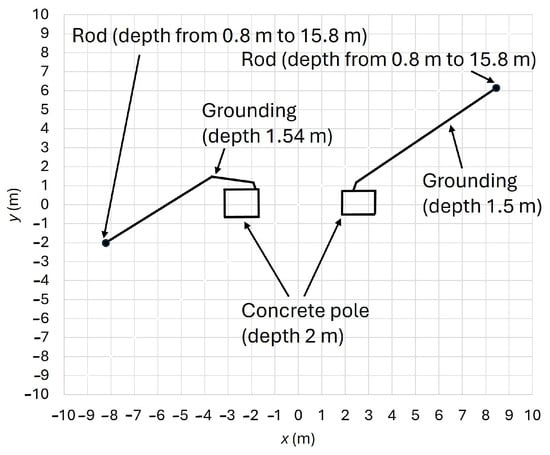 Figure 2 shows the initial and final depth of the rods. The depth of individual parts of the grounding system is defined, and their positions are determined based on the geometric grid.