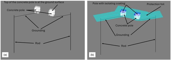 The remainder of this paper is organized as follows. The protection using protective foil is described in Section 2. In Section 3, test transmission poles are presented, and soil is determined based on Wenner’s method measurements. The basic instructions to make an FEM model of a grounding system with protective foil and FEM models for both test poles are presented in Section 4. Section 5 is the longest. The approach is presented for optimal foil width determination using only three FEM calculations. Also, the results for both test poles are presented in Section 5. Finally, in Section 6, conclusions are given considering the presented approach for optimal foil width determination.