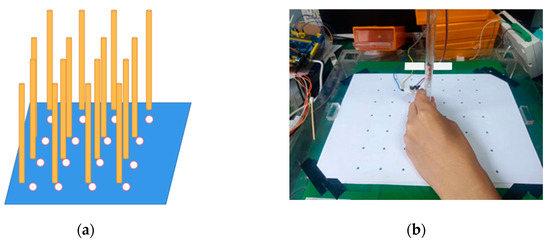 The calibration process needs to be carried out individually for each transmitting coil by setting up some test points at known locations, using the nonlinear least squares method. It assumes that the measured value of the magnetic flux of the transmitting coil at the test point in the electromagnetic transmitting plate is , and at the same time, the theoretical flux of the transmitting coil at the same point, which is derived according to the magnetic field model, is . Then, the solution for the objective function to minimize the error between the two can be expressed as
