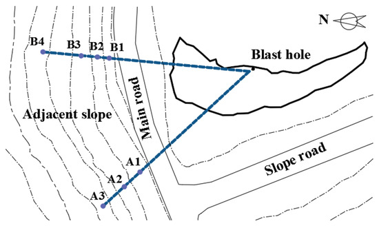 To investigate the distribution of blast-induced vibrations in different directions, Garai et al. [24] monitored vibrations in four directions around the blasting area and plotted contour maps of peak particle velocity (PPV) values using multiple monitoring datasets. They controlled ground vibrations by altering the initiation positions and sequences. However, Chrzan [24] has argued that vibration control based solely on data from four monitoring points lacks sufficient data support, and proposed the idea of uniformly distributing a large number of monitoring points across the blasting area. To date, there has been no reported literature on all-around vibration data collection and research around the blasting area via the deployment of a large number of monitoring points in complex blasting sites. Although researchers have extensively discussed the installation methods of vibration monitors [25,26,27], they have not specified methods for determining the optimal installation locations. Typically, monitoring points are set at locations requiring protection, and the adjusted delay time for vibration control at these points is considered the optimal solution for all-around vibration control around the blasting area [28,29]. For instance, Ongen et al. [30] installed vibration monitors at residential buildings and analyzed vibration data from 39 blasts in a quarry, providing data support for vibration control. Shi et al. [31] placed vibration monitoring points on mine slopes and established a vibration attenuation model based on the relationship between peak vibration velocity and scaled distance, thereby determining the delay time that meets slope stability requirements. Rezaeineshat et al. [32] precisely measured and collected data from 112 blasts to protect nearby residences and other structures in a limestone mine, constructing an artificial neural network (ANN) model to predict PPV and identify the optimal delay time. Li et al. [33] proposed a blast vibration spectrum control scheme suitable for high-bench slope excavation in hydropower projects, achieving vibration prediction and delay optimization based on single-hole vibration data monitored at different height positions.