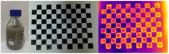 Calibration Plate Preparation: We utilize a standard checkerboard calibration plate typically employed for RGB camera calibration, as shown in Figure 1. The black regions of the plate are uniformly coated with a pre-configured AgNWs/PVB ethanol solution, forming a composite coating characterized by high visible-light transmittance (~83.0%), high mid-infrared reflectivity (~69.8%), and low emissivity [98]. The thermal absorption capability of the composite structure primarily depends on the emissivity of the outermost layer [99]. Consequently, the AgNWs coating effectively suppresses thermal radiation emission in the black regions.