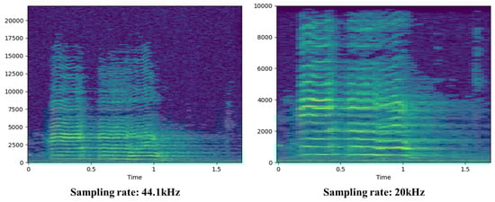 To prepare the acoustic signals for model training, a preprocessing step was first applied. The raw audio data were resampled to 20 kHz, as most characteristic information of the signals lies below 10 kHz as shown in Figure 5.