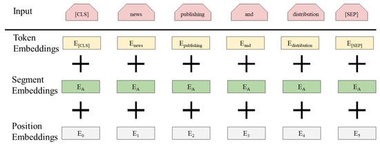In this section, we employed BERT to convert enterprises’ main business information into feature vectors, thereby capturing contextual semantic information. BERT, a pre-trained language model developed by Google, has significantly advanced NLP by enabling bidirectional context understanding. Its transformer architecture eliminates the sequence dependencies found in traditional RNNs and CNNs, allowing parallel input sequence processing. This enables the extraction of word relationship features within sentences and across multiple levels, resulting in a more comprehensive reflection of sentence semantics. Unlike previous pre-trained models, BERT captures semantic information based on sentence context, reducing ambiguity. Additionally, its bidirectional semantic information extraction capability yields richer and more nuanced features. The BERT model′s input is illustrated in Figure 2.