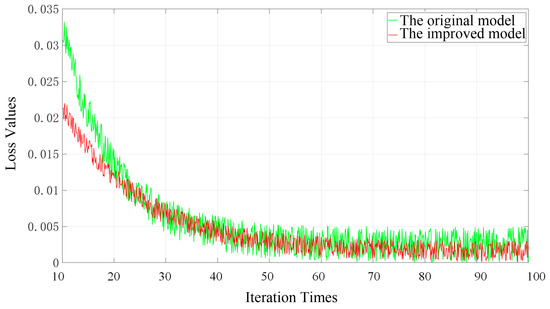 In order to improve the performance of the model, the Adam algorithm was used to optimize ikt. In addition, 100 epochs were set during the training process; each epoch contains 60 mini-batches, with a starting learning rate ε of 0.01, a decay rate ρ of 0.999, and a momentum coefficient μ of 0.9. Meanwhile, in order to improve the efficiency of the training, the training strategy of parameter initialization was used to accelerate the convergence speed of the model.