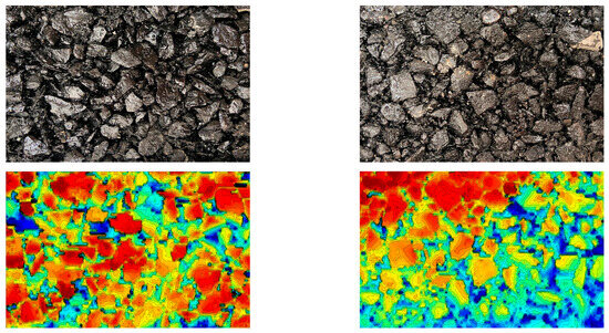 The macroscopic texture depth maps of the asphalt before and after correction are shown in Figure 4: