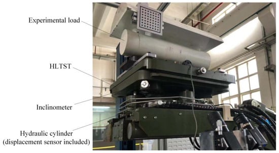 According to the results of the numerical simulation, the machining process of the HLTST is optimized and the error experimental platform is built based on the optimized table, as shown in Figure 10, in which the hydraulic cylinder is a custom-made product with a built-in displacement sensor, whose range is 50 mm, and the measurement accuracy is 0.01 mm; the table is installed with the Rion RNA826T inclination, with a measurement range of ±15°, a resolution of 0.001°, and a measurement accuracy of 0.02°.