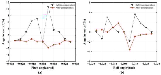 (a) Error compensation for pitch angle under no load; (b) error compensation for roll angle under no load.