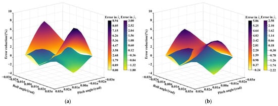 (a) Heat map of pitch angle independent errors; (b) heat map of roll angle independent errors.