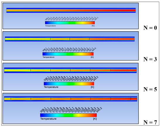 Temperature Profile of CCTHE at varied insert quantity (N).