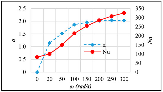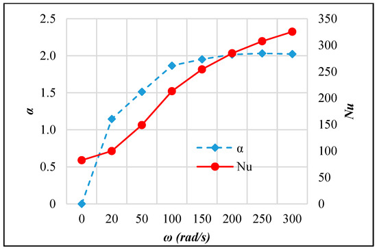 and Nu at varied rotational speeds (ω) during Active AHT.