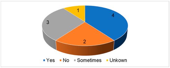 Following this question, the participants were asked whether they perceived a lack of awareness within the industry regarding contemporary techniques and emerging technologies. The responses included six “yes” responses, three “no” responses, and one response indicating “unknown”. Combining the responses from Figure 3 indicates that most of the participants agreed on which elements of historical assets would benefit from a material change to improve their preservation. However, there was limited awareness of the specific contemporary materials and techniques available or previously implemented in similar contexts. This is a critical gap for which further research and industry focus could lead to measurable improvements in cost efficiency, maintenance time, and long-term asset sustainability.