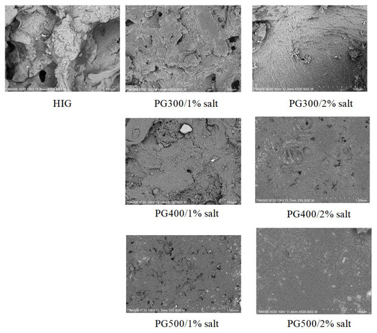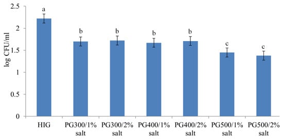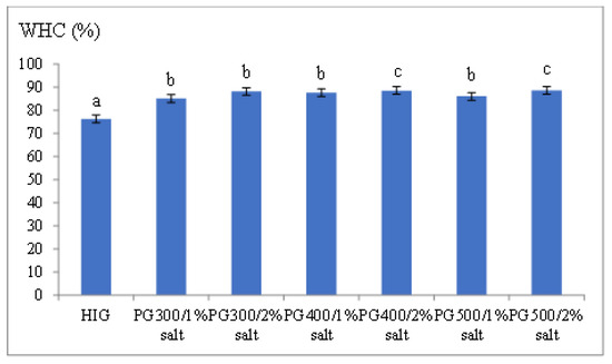 | PG500/2% salt | 11.56 ± 1.76b | 0.89 ± 0.02a | 464.92 ± 13.56b |