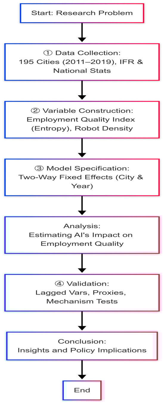 This study seeks to address this gap by investigating the regional disparities in the impact of AI on employment quality across China’s prefecture-level cities from 2011 to 2019. Specifically, we aim to answer the following research questions: