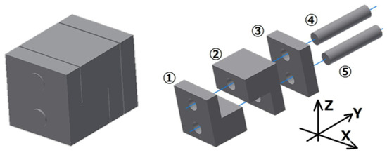 A disassembling sequence of n moves can be expressed as , , ⋯, where , which represents to remove part in direction , then part in direction , and so on. The mth move () is feasible in the case that for any i (), or ; that is, for any part i, it does not impede the move or it is already removed as a part of the preceding moves. Disassembling sequence , , ⋯, is a feasible disassembling process for part , in the case that all the moves () are feasible.